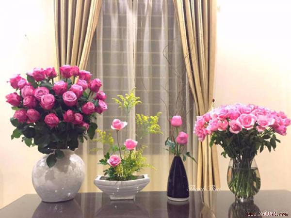 Những bông hồng được chị Thiết thể hiện với bốn cách cắm khác nhau